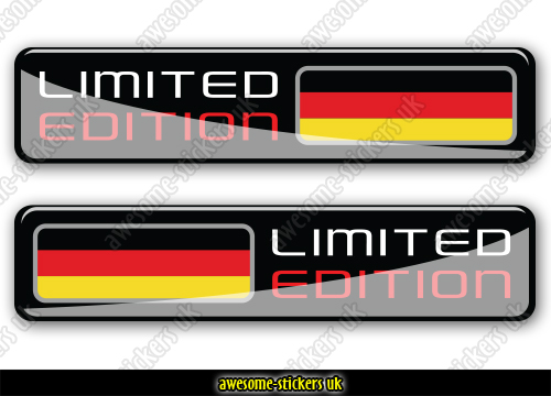 A pair of high resolution digitally printed GERMAN flag vinyl stickers from Awesome Stickers UK. These decals are printed using a high specification vinyl inkjet printer, using long-life inks and outdoor-use top quality vinyl. The sticker is contour cut, so you just peel and stick.