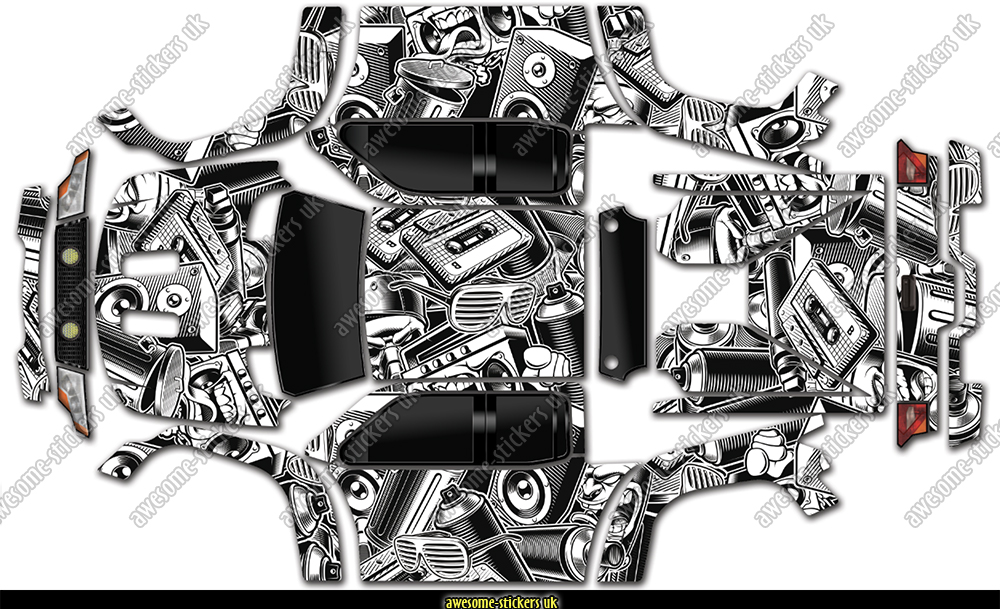 1) These are not intended to be a 100% coverage wrap – there will be small gaps between each panel showing the shell colour through.